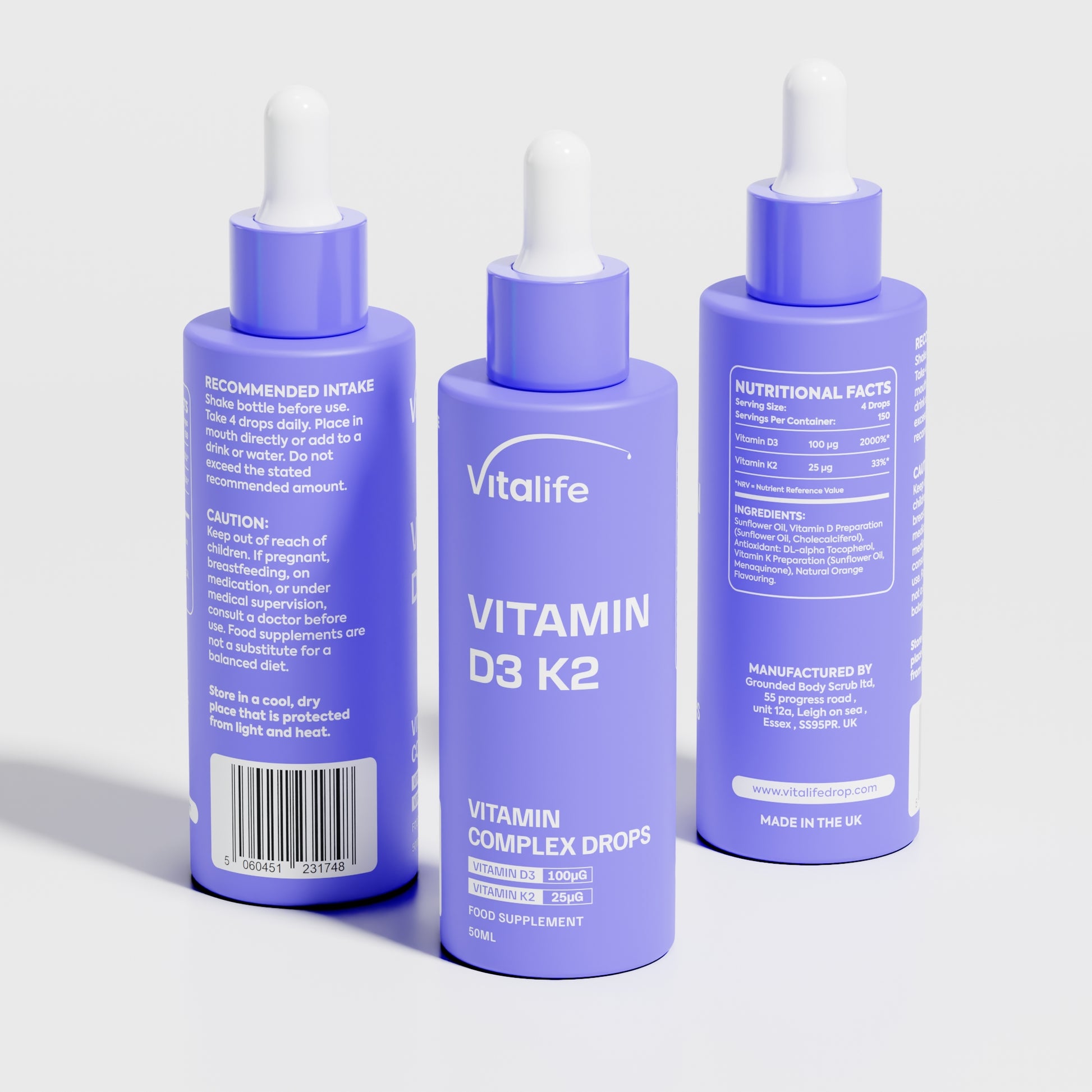 Boost your health with Vitalife’s Vitamin D3 & K2 Drops, a powerful, synergistic formula designed to support your bone, immune, and cardiovascular health. Each drop combines the potent benefits of Vitamin D3 and Vitamin K2 to enhance calcium absorption and promote optimal bone strength.